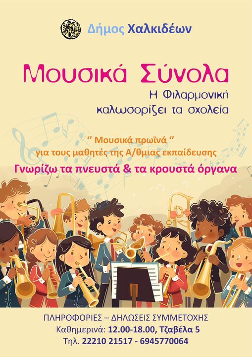 Η Φιλαρμονική Ορχήστρα του Δήμου Χαλκιδέων, για ακόμη μια χρονιά, υποδέχεται τους μικρούς μαθητές στα «Μουσικά πρωϊνά» της, στο πλαίσιο των εκπαιδευτικών της δραστηριότητων.