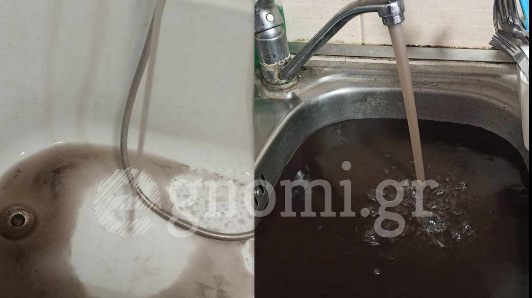 Όταν επανήλθε η υδροδότηση, περίπου στη 1:30 το μεσημέρι, άρχισε να τρέχει μαύρο νερό (κατά κυριολεξία) στις βρύσες των σπιτιών, όπως φαίνεται και στις φωτογραφίες, που μας έστειλε αναγνώστης του egnomi.gr.