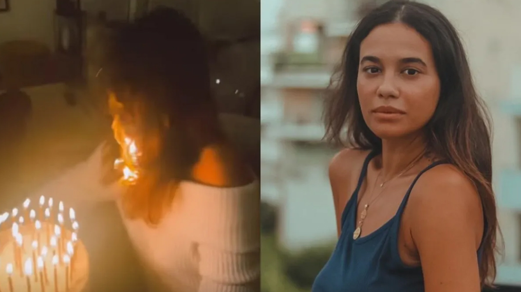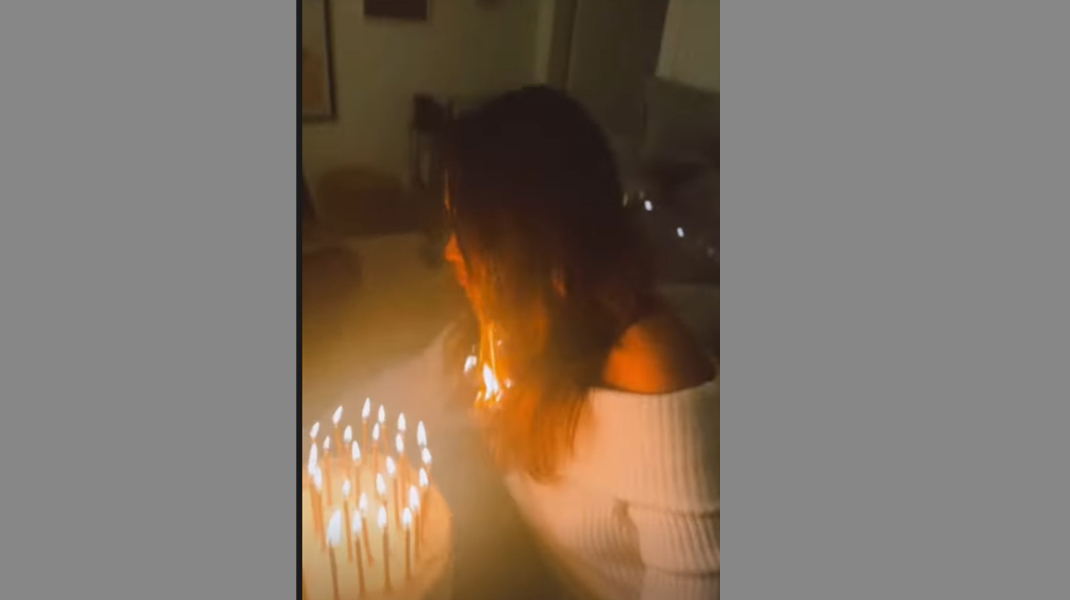 Η βραδιά κυλούσε όμορφα μέχρι την στιγμή που άρχισε να σβήνει τα κεράκια της τούρτας της ...και πήραν φωτιά τα μαλλιά της.