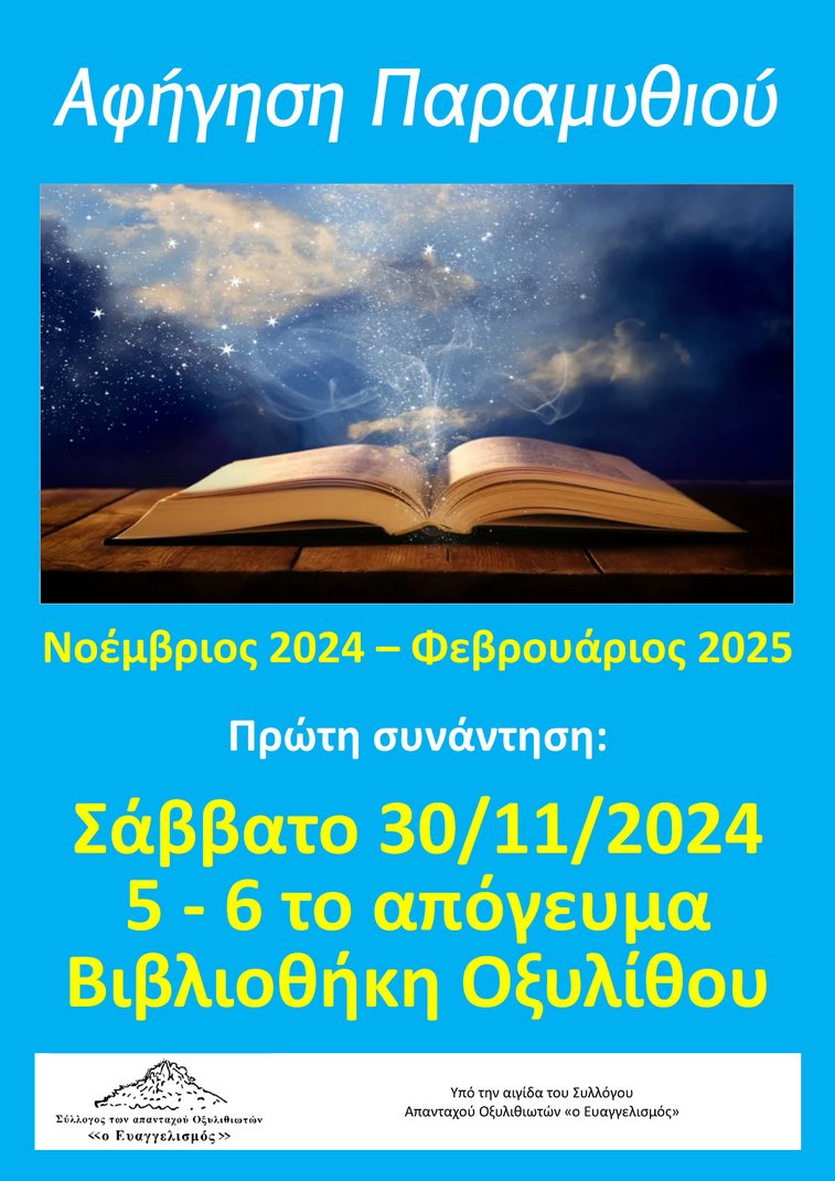 ΟΞΥΛΙΘΟΣ ΕΥΒΟΙΑΣ: Αφήγηση παραμυθιών στη Βιβλιοθήκη του Συλλόγου των απανταχού Οξυλιθιωτών
