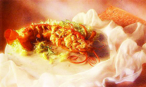 Σε καλά αλατισμένο νερό που βράζει ρίχνω τους αστακούς και τους βράζω για 10 λεπτά. Αφαιρώ και τους κόβω στη μέση κατά μήκος. Αφαιρώ προσεχτικά το κρέας από το κέλυφος και αφού πλύνω τα άδεια κελύφη τα στεγνώνω καλά.