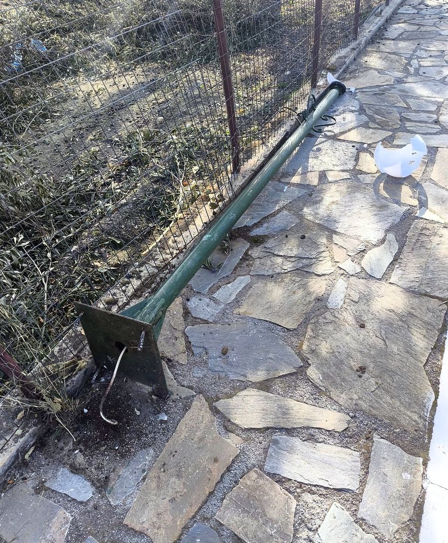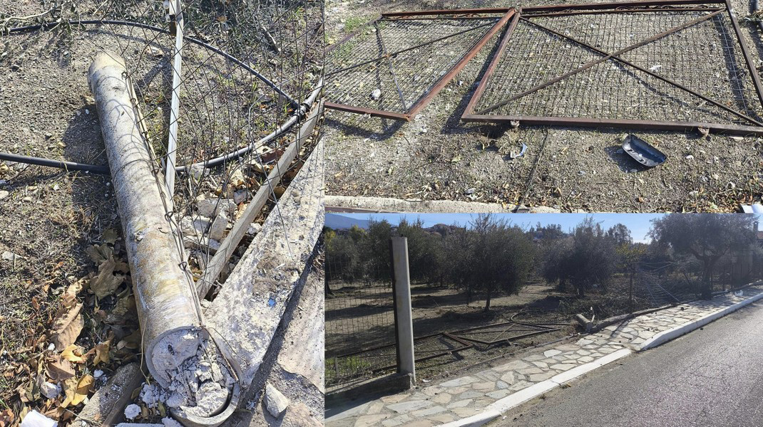 Συγχωριανός είχε πέσει με το όχημά του πάνω στην περίφραξη του χωραφιού και είχε διαλύσει την πόρτα και μέρος του φράκτη, ενώ είχε ρίξει και μία δημοτική κολόνα φωτισμού, που βρισκόταν στο πεζοδρόμιο.