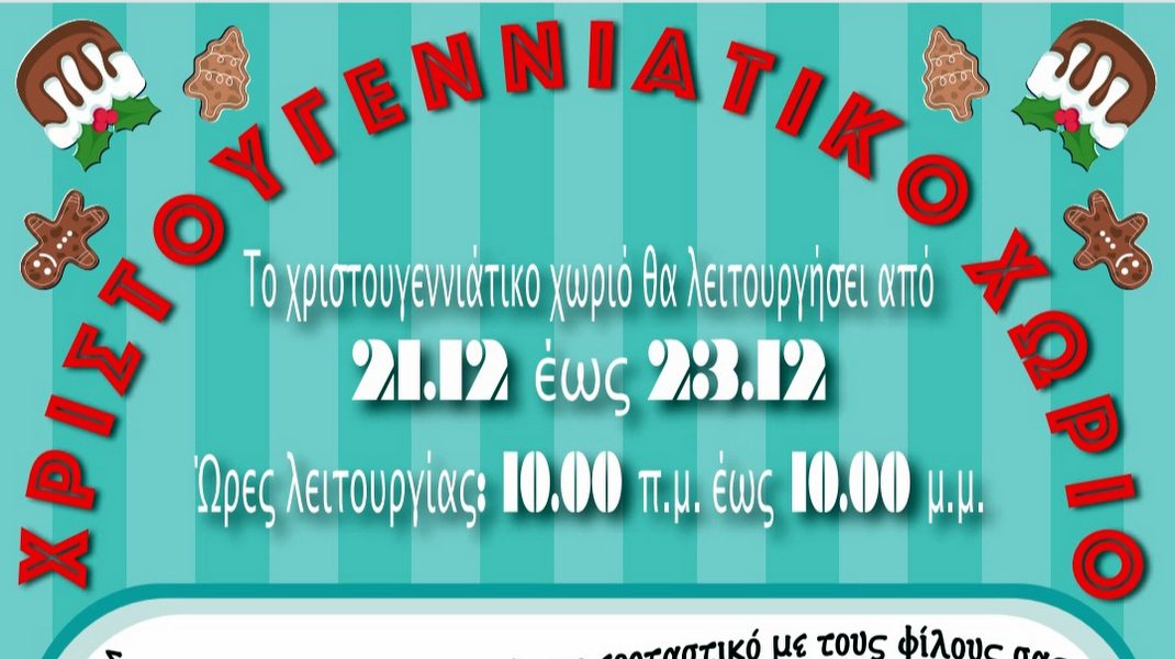 Σύμφωνα με τον προγραμματισμό που έχει γίνει, η έναρξη του χριστουγεννιάτικου χωριού θα γίνει στις 21 Δεκεμβρίου και θα κρατήσει μέχρι και 23 Δεκεμβρίου, από τις 10 το πρωί έως τις 10 το βράδυ.