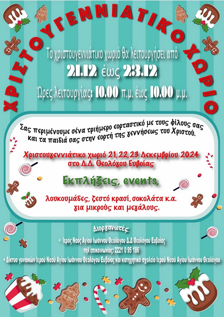 Στο κλίμα των Χριστουγέννων ετοιμάζεται να μπει και ο Θεολόγος Ευβοίας, του Δήμου Διρφύων- Μεσσαπίων, καθώς ήδη έχει ξεκινήσει να στήνει ένα μικρό χριστουγεννιάτικο χωριό, στον προαύλιο χώρο του Ιερού Ναού Αγίων Κωνσταντίνου και Ελένης