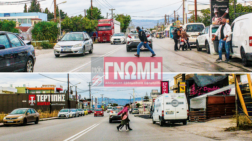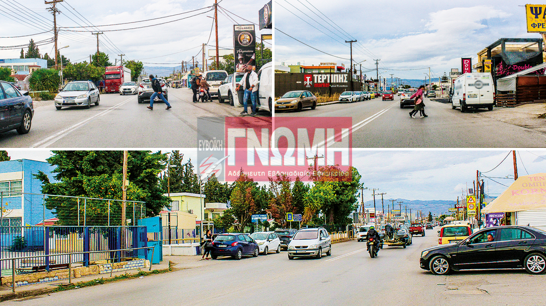 Τη στιγμή που η κυκλοφορία στον κεντρικό δρόμο Χαλκίδας-Αρτάκης δεν σταματάει στιγμή, οι πεζοί που θέλουν να τον διασχίσουν, υποχρεώνονται να κάνουν επικίνδυνους ελιγμούς ανάμεσα στα διερχόμενα οχήματα.