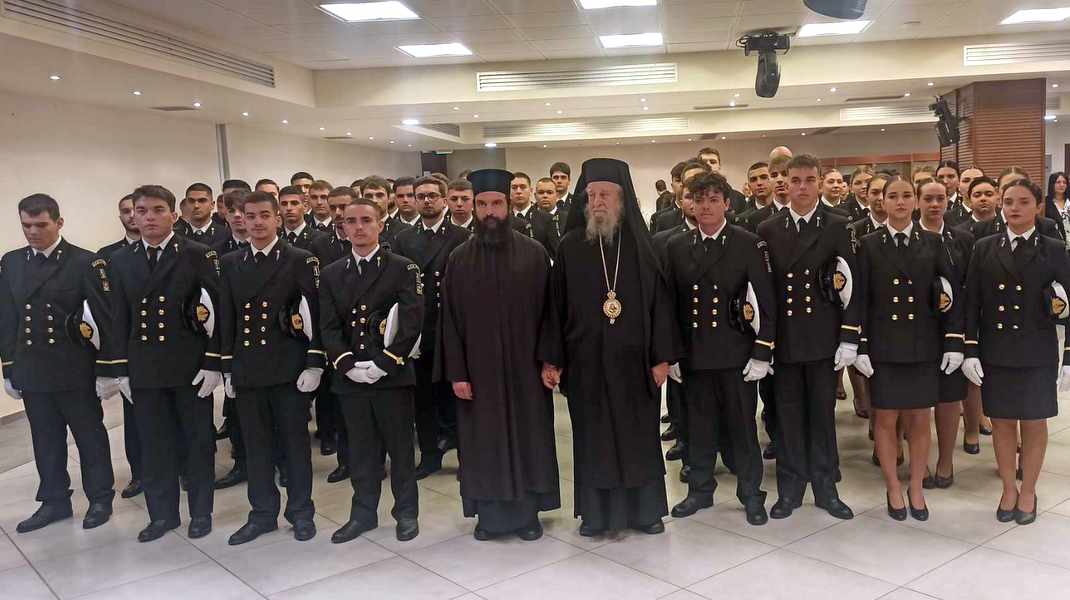 Ο Μητροπολίτης Καρυστίας και Σκύρου κ. Σεραφείμ τέλεσε τον Αγιασμό και ευχήθηκε στους νέους σπουδαστές και αυριανούς πλοίαρχους του Εμπορικού Ναυτικού, αναφερόμενος στις δυσκολίες, αλλά και στις μεγάλες ευκαιρίες ζωής του ναυτικού επαγγέλματος.