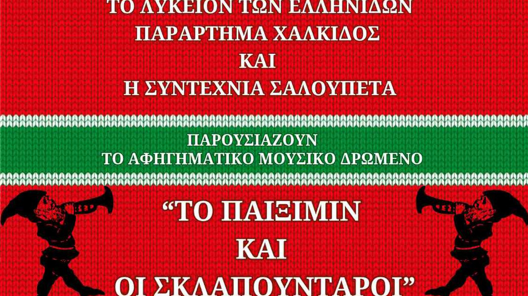Το παράρτημα Χαλκίδας του Λυκείου των Ελληνίδων και η Συντεχνία Σαλουπέτα με το πολυφωνικό σχήμα Κλωστή Λαλιά παρουσιάζουν το αφηγηματικό μουσικό δρώμενο "Το Παιξίμιν και οι σκλαπούνταροι".