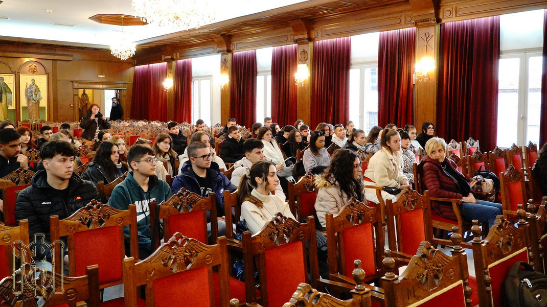 Ο Παναγιώτατος τους υποδέχτηκε εγκάρδια, απηύθυνε λόγο πατρικό προς τους μαθητές και τους μίλησε σχετικά με την ιστορία της Θεσσαλονίκης και των ιστορικών μνημείων της πόλης.