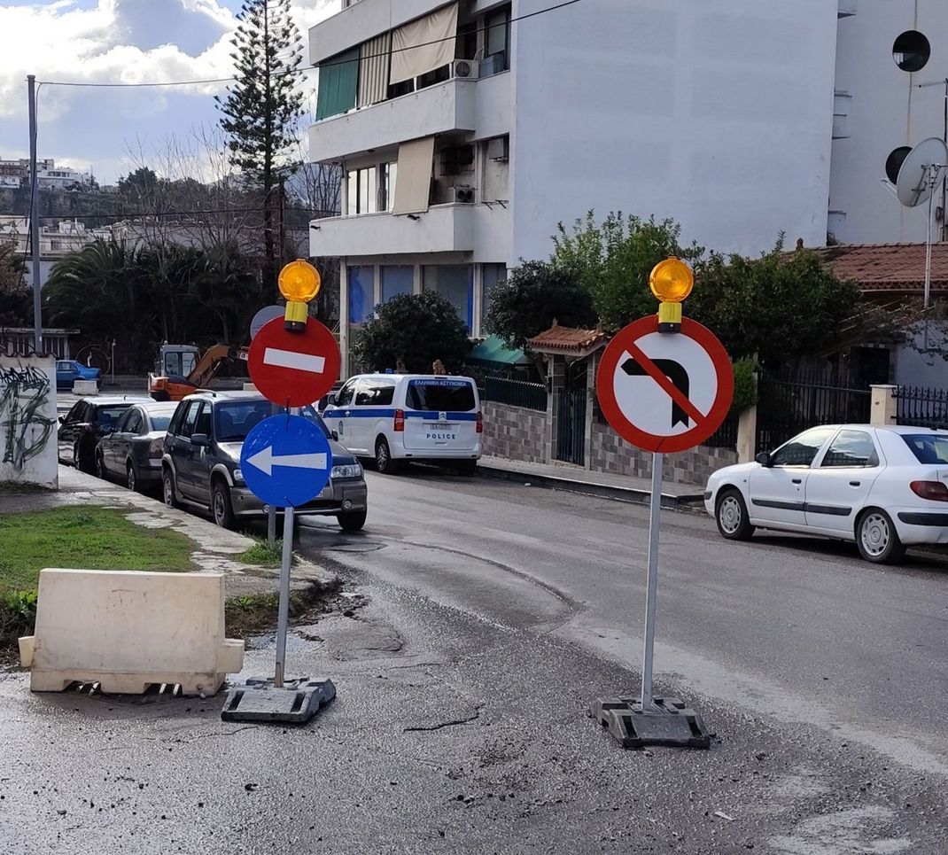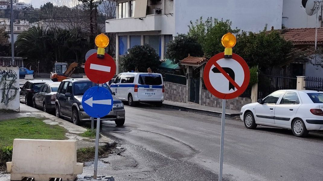 Πρωί Σαββάτου 28 Δεκεμβρίου και όποιος κατέβαινε την οδό Αγίου Ιωάννη, στη συμβολή με την οδό Αμαρυνθίων έβλεπε αυτή την εικόνα, με την τροχονομική σήμανση.