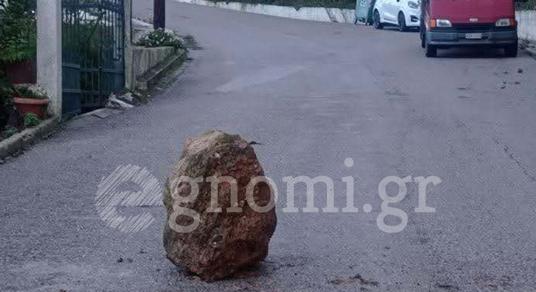 Ένας μεγάλος βράχος αποκολλήθηκε από το βουνό το πρωί του Σαββάτου 28 Δεκεμβρίου και έπεσε στο οδόστρωμα στον κεντρικό δρόμο του Αχλαδίου στη Βόρεια Εύβοια.
