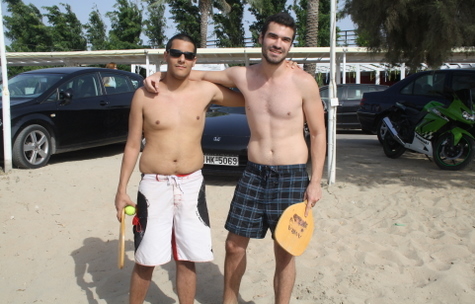 Με τη ρακέτα ανά χείρας και φόντο τους υπόλοιπους παραθάλασσιους αθλητές φωτογραφίσαμε τον Νίκο Γιάννη και τον Ακη Βυλαώρα. "Μιάμιση ώρα παίζουμε ρακέτες όταν ερχόμαστε στην παραλία και το κάνουμε γιατί μας αναζωογονεί" λένε τα αγόρια που προφανώς το...πονάνε το μπαλάκι!