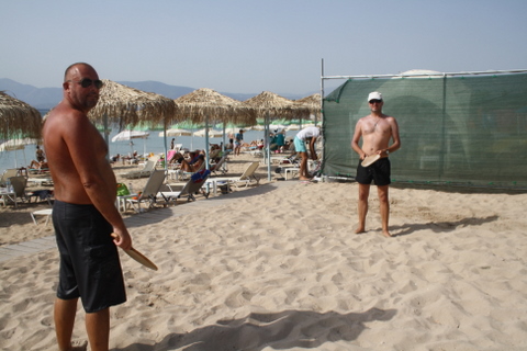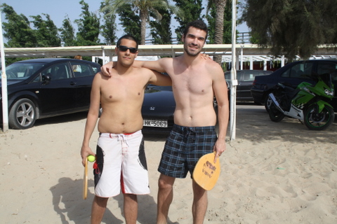 Ξεχνάνε να μπουν στη θάλασσα ο Χρήστος Μούκας και ο Μάνος Μουτσιόπουλος από την αγάπη που έχουν στην ανταλλαγή μπαλιών. Επιδίδονται σε τρίωρους αγώνες με το μπαλάκι (καρφιά, κοφτά, ανάποδα και δεν συμμαζεύεται!) και ο φανατισμός τους για το άθλημα φαίνεται από τη δήλωσή τους: "Χτυπιόμαστε χειμώνα-καλοκαίρι!". Μπράβο οι παλήκαροι...