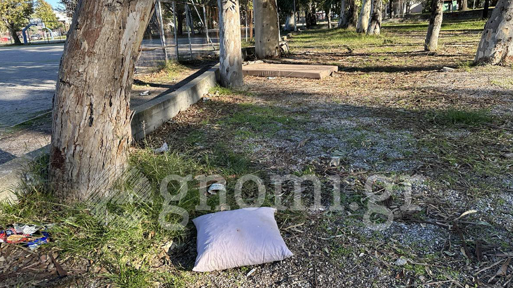 Μάλιστα, δίπλα στο σλιπάκι είναι πεταμένο ένα παλιό στρώμα ύπνου και ένα μαξιλάρι.