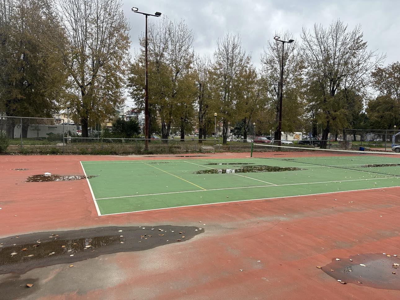 Μέσα στα νερά είναι και το γήπεδο τένις του πάρκου.