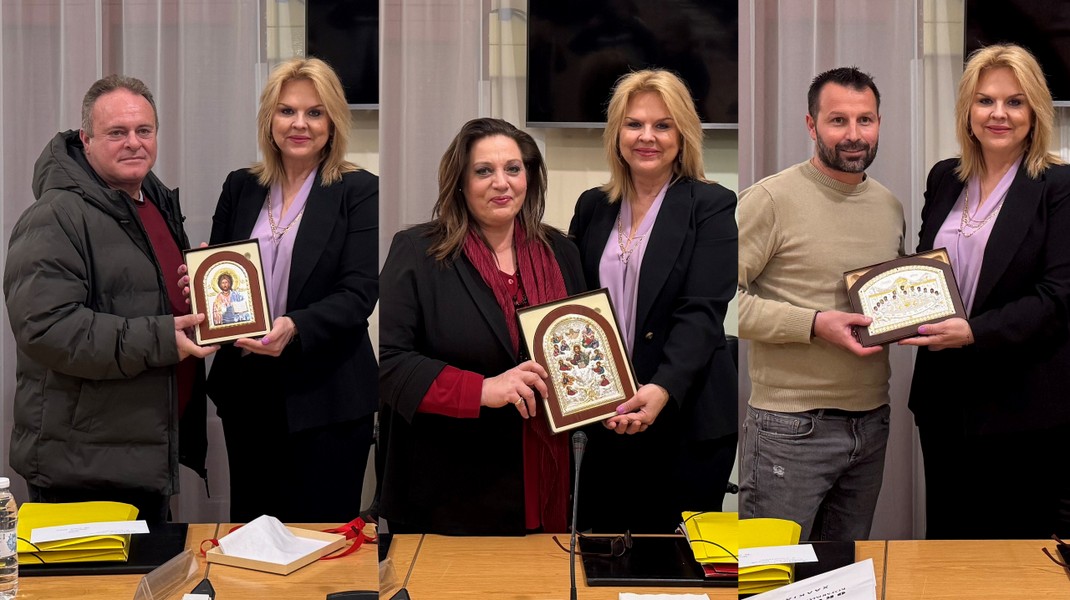Στους τρεις τυχερούς η Δήμαρχος Έλενα Βάκα πρόσφερε από μία εικόνα, ως συμβολικό δώρο, για να έχουν ευλογία και να θυμούνται την τυχερή ημέρα.