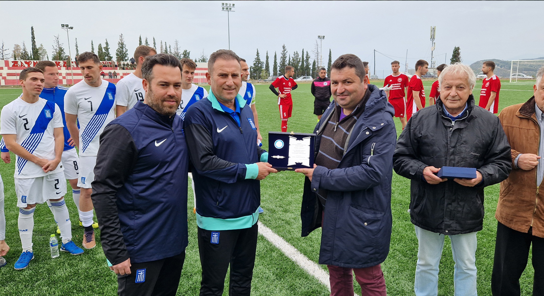 Πριν την έναρξη του αγώνα ο Δήμαρχος Μαντουδίου-Λίμνης-Αγίας Άννας Γιώργος Τσαπουρνιώτης απένειμε αναμνηστική πλακέτα στον προπονητή της Εθνικής Ομάδας Ενόπλων Θοδωρή Παχατουρίδη, ο οποίος έχει διατελέσει παίκτης και προπονητής στην Εύβοια με τον Ηρακλή Ψαχνών.