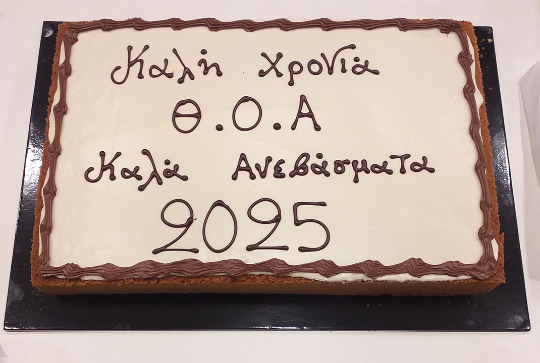 Ο Γιάννης Παπασυμεών, πρόεδρος της Θ.Ο.Α. έκοψε την πίτα και ο Στέφανος Σφατίδης ήταν ο τυχερός που κέρδισε το φλουρί.