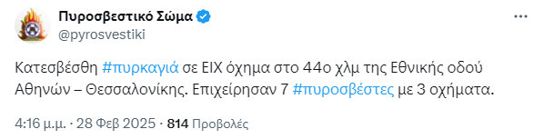 Κάτω από συνθήκες, που δεν έχουν διευκρινιστεί, εκδηλώθηκε φωτιά σε ΙΧ αυτοκίνητο, το μεσημέρι της Παρασκευής 28 Φεβρουαρίου, στο 44ο χιλιόμετρο της Εθνικής Οδού Αθηνών - Λαμίας, στο ύψος του Αυλώνα.