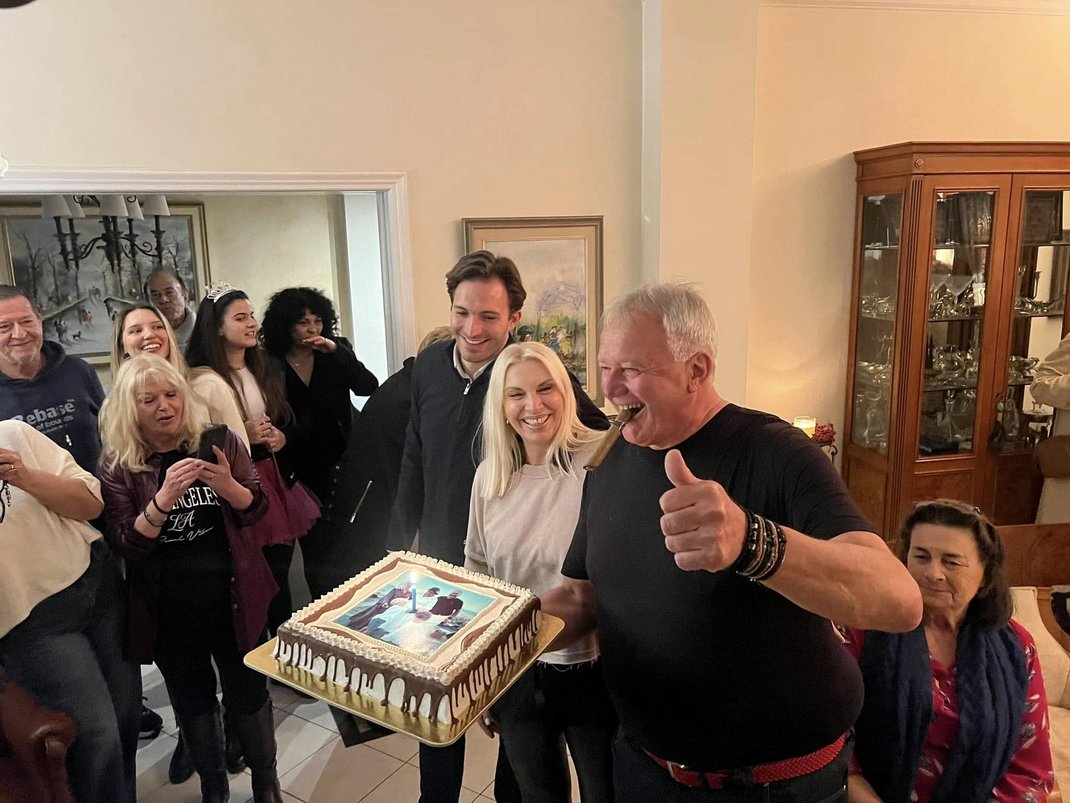 Με το πούρο στο στόμα έφερε την τούρτα χαμογελαστός και όλοι οι καλεσμένοι άρχισαν να τραγουδούν το " Happy birthday", ενώ τα πυροτεχνήματα του καρναβαλιού φώτιζαν το ουρανό.