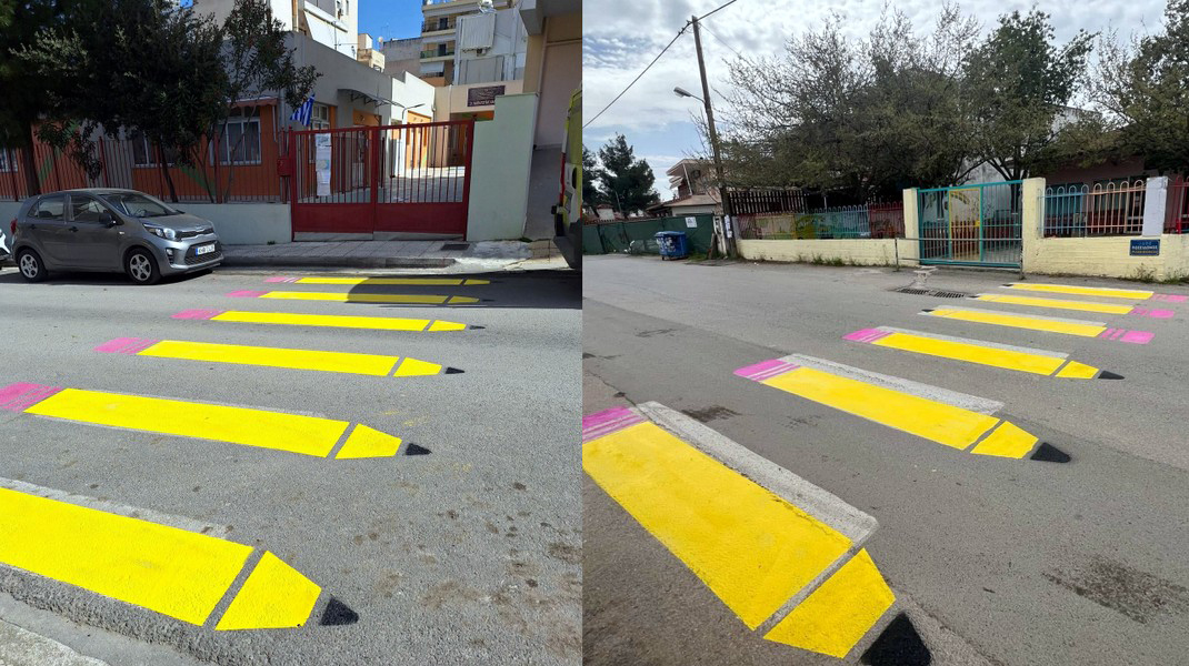 Πρωτότυπες διαβάσεις πεζών, σε σχήμα μολυβιού, κατασκευάζει ο Δήμος Χαλκιδέων, έξω από σχολεία, σε συνεργασία με ασφαλιστική εταιρεία, στο πλαίσιο του προγράμματος Safe Roads Project.