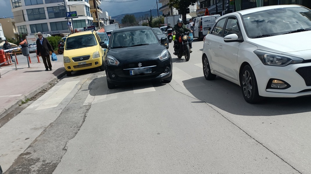 Το όχημα είχε διπλοπαρκάρει πάνω στη διάβαση πεζών, αλλά έφυγαν τα άλλα δύο αυτοκίνητα, που ήταν παρκαρισμένα κολλητά στο πεζοδρόμιο και έμεινε ...μετέωρο το Suzuki στη θέση που βλέπετε.