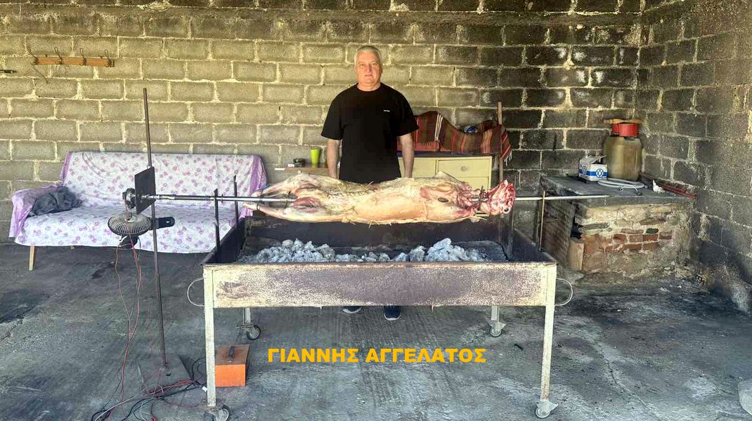 5. Ο γνωστός συνδικαλιστής του Νοσοκομείου Χαλκίδας Γιάννης Αγγελάτος έψησε στα Δελέρια Τυρνάβου.