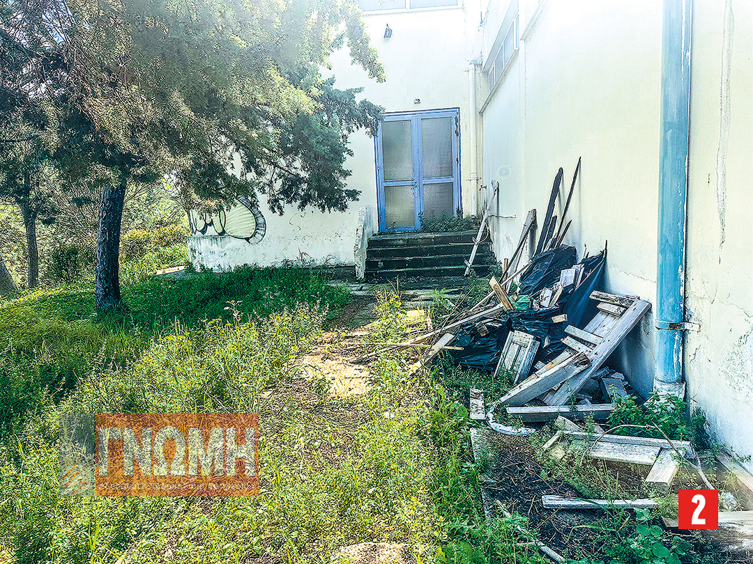 Οι σοβάδες έχουν ξεκολλήσει από το τοιχίο της περίφραξης και αποκαλύφθηκαν τα σίδερα (φωτό 1). Τα χορτάρια θέριεψαν και έφτασαν στις πόρτες, ενώ μπάζα, σπασμένα ξύλα και κάθε λογής σαβούρα δημιούργησαν μια εστία μόλυνσης στο πίσω μέρος του κλειστού (φωτό 2).