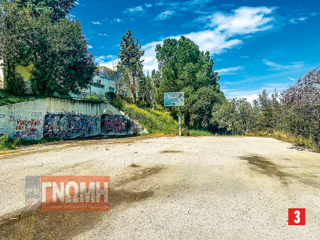 Σε άθλια κατάσταση είναι και το υπαίθριο γηπεδάκι του μπάσκετ. Οι μπασκέτες είναι ξεχαρβαλωμένες (φωτό 3) και η μία δεν διαθέτει ούτε στεφάνι, ενώ ο αγωνιστικός χώρος δεν έχει διαγραμμίσεις και κυρίως περίφραξη.