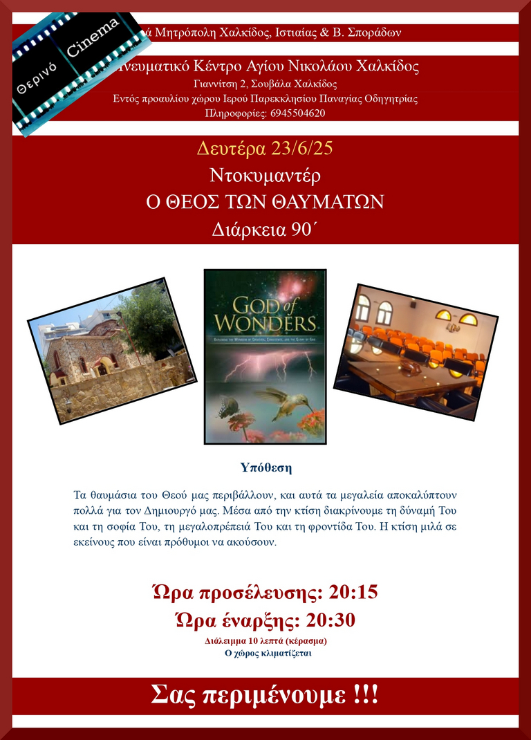 ΧΑΛΚΙΔΑ: Προβολή ντοκιμαντέρ στο Πνευματικό Κέντρο της Ενορίας Αγίου Νικολάου