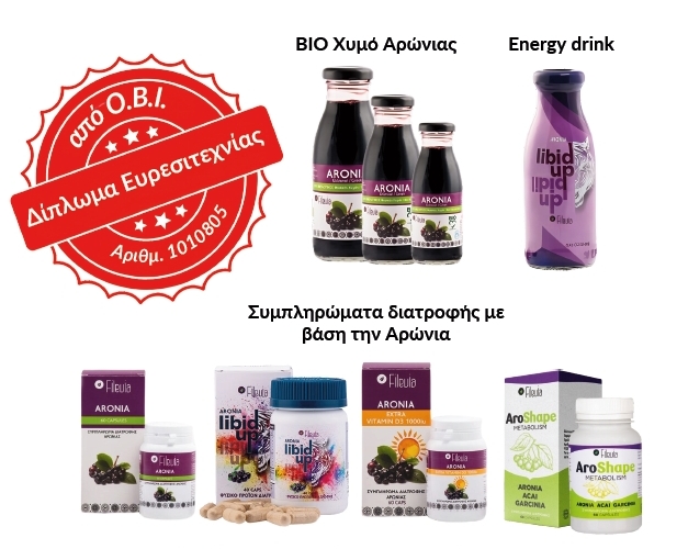 Δίπλωμα ευρεσιτεχνίας με Αριθμό 1010805 πήρε η Ευβοϊκή εταιρία Filevia, η οποία καινοτομεί και αξιοποιεί τις ιδιότητες του πολύτιμου καρπού Αρώνια και σε συνδυασμό με άλλα φυσικά βότανα και βιταμίνες, δημιουργεί συμπληρώματα διατροφής υψηλής ποιότητας.