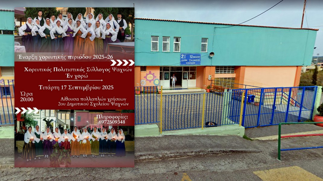 Ο Χορευτικός Πολιτιστικός Σύλλογος Ψαχνών "Εν χορώ" ανακοίνωσε ότι η χορευτική περίοδος 2025-26 ξεκινάει την Τετάρτη 17 Σεπτεμβρίου, στις 8 το βράδυ στην αίθουσα πολλαπλών χρήσεων του 2ου Δημοτικού Σχολείου Ψαχνών.