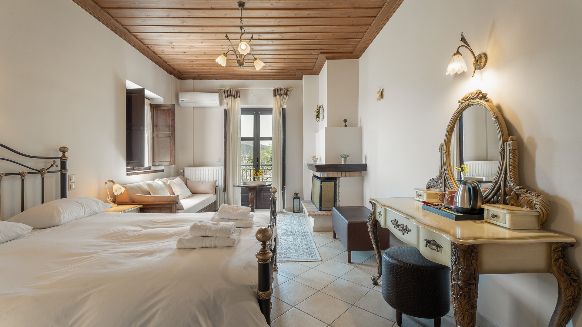 Επιπλέον, διαθέτει έναν υπέροχο χώρο που απολαμβάνετε πλούσιο παραδοσιακό πρωινό και έξτρα σάλα με τζάκι, όπου μπορείτε να καθίσετε για καφεδάκι ή ποτάκι.