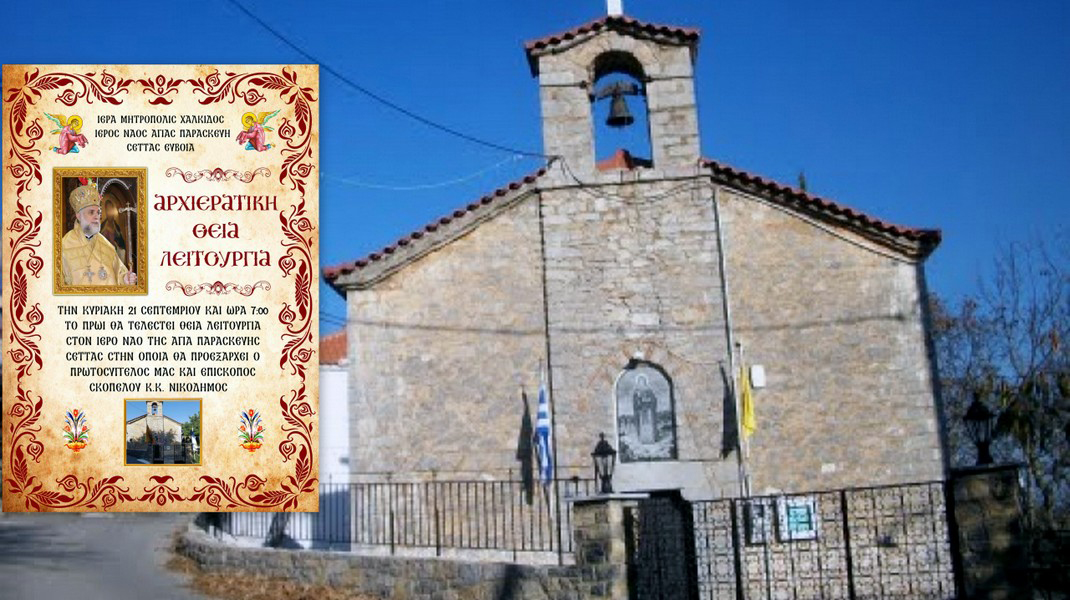 Ο Επίσκοπος Σκοπέλου κ. Νικόδημος θα μεταβεί στο ορεινό χωριό της Σέτας, του Δήμου Ερέτριας, την Κυριακή 21 Σεπτεμβρίου το πρωί, όπου στον ιερό ναό της Αγίας Παρασκευής θα προεξάρχει στην Κυριακάτικη Θεία Λειτουργία.
