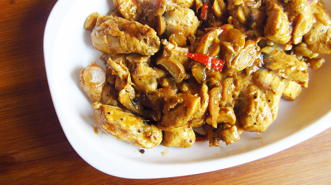 • 1 κιλό κοτόπουλο μπούτι κομμένο σε κομμάτια