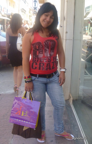Παραμονές Δεκαπενταύγουστου φωτογραφίσαμε τη Γιώτα Τσακίρη στην οδό Αβάντων. Είχε κατεβεί για ψώνια και έψαχνε κάτι συγκεκριμένο, το οποίο μας αποκάλυψε, λέγοντας: