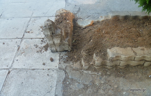 Όταν βαδίζετε στο πεζοδρόμιο της οδού Βενιζέλου έχετε το νου σας. Στο ύψος της Εθνικής Τράπεζας, το σπασμένο παρτέρι της φωτογραφίας έχει μετατραπεί σε ...παγίδα για τους πεζούς, οι οποίοι κινδυνεύουν να χτυπήσουν χωρίς να το καταλάβουν.