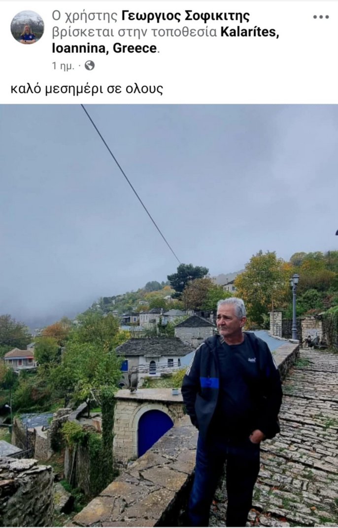 Στη διαδρομή, σε πέτρινο μονοπάτι, έβγαλε την τελευταίαα φωτογραφία της ζωής του και έκανε ανάρτηση στο facebook, γράφοντας: "Καλό μεσημέρι σε όλους", με επισήμανση της τοποθεσίας.