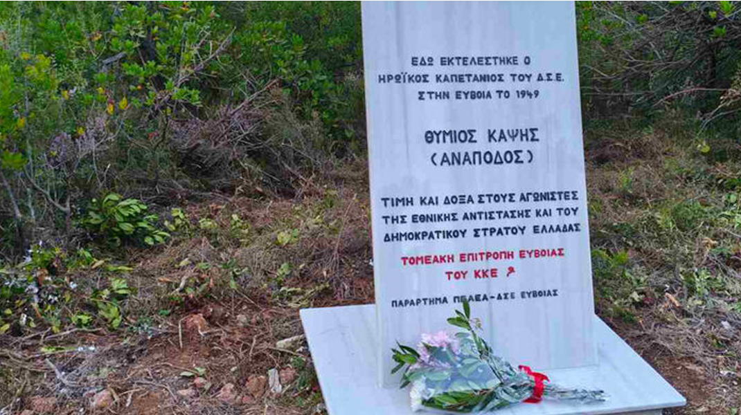 Με την εκπλήρωση ενός ιστορικού χρέους του ΚΚΕ και την τοποθέτηση μαρμάρινης πλάκας στο σημείο που δολοφονήθηκε ο Θύμιος Καψής (Ανάποδος), ξεκίνησαν το απόγευμα της Παρασκευής 14 Οκτωβρίου οι εκδηλώσεις για το Ανεξάρτητο Τάγμα του Δημοκρατικού Στρατού Ελλάδας στην Εύβοια.
