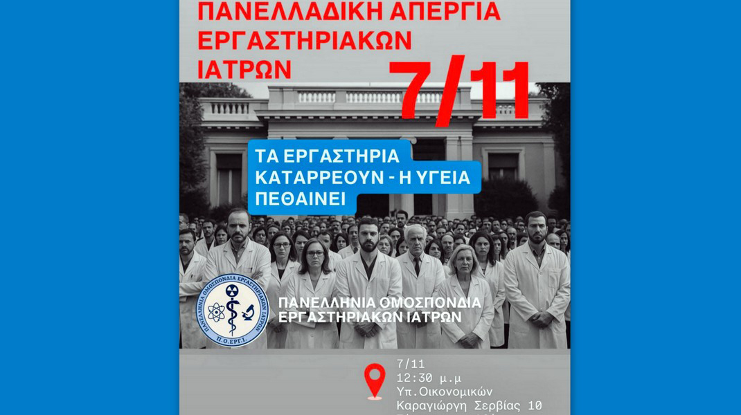 Καλούνται όλοι οι Ιδιώτες Εργαστηριακοί Ιατροί να συμμετάσχουν μαζικά στη διαμαρτυρία, με την κάλυψη των εξόδων μετακίνησης από τους κατά τόπους Ιατρικούς Συλλόγους.