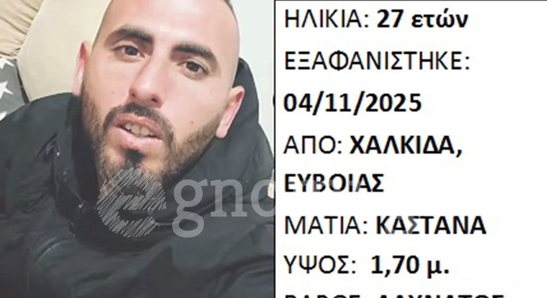 Συναγερμός έχει σημάνει στις αστυνομικές αρχές για την εξαφάνιση του 27χρονου Σούλο Χαλίλι, Αλβανικής καταγωγής, ο οποίος κατοικούσε μόνιμα στη Χαλκίδα.