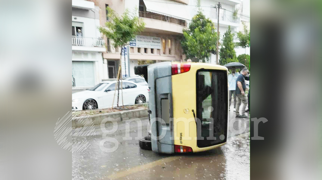 ΧΑΛΚΙΔΑ ΟΔΟΣ ΑΡΕΘΟΥΣΗΣ: Φορτηγάκι τούμπαρε στη μέση του δρόμου