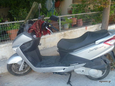 Όλα τα είχαμε δει, το είδαμε κι αυτό. Βεσπάκι με ...φουλάρι, παρκαρισμένο στις Εργατικές Κατοικίες της Αγίας Μαρίνας. Πάντως μη ... μου πείτε, ο ιδιοκτήτης πρέπει να είναι καλλιτέχνης.
