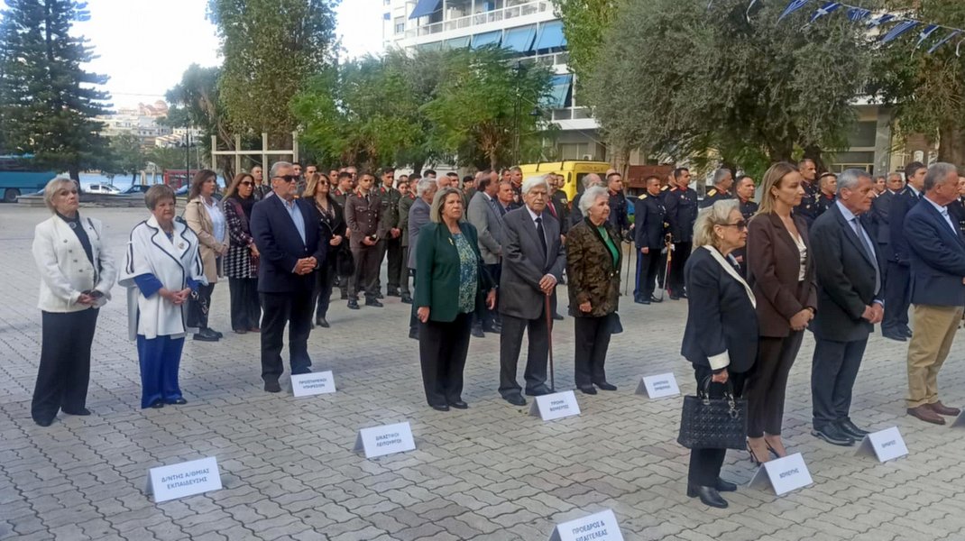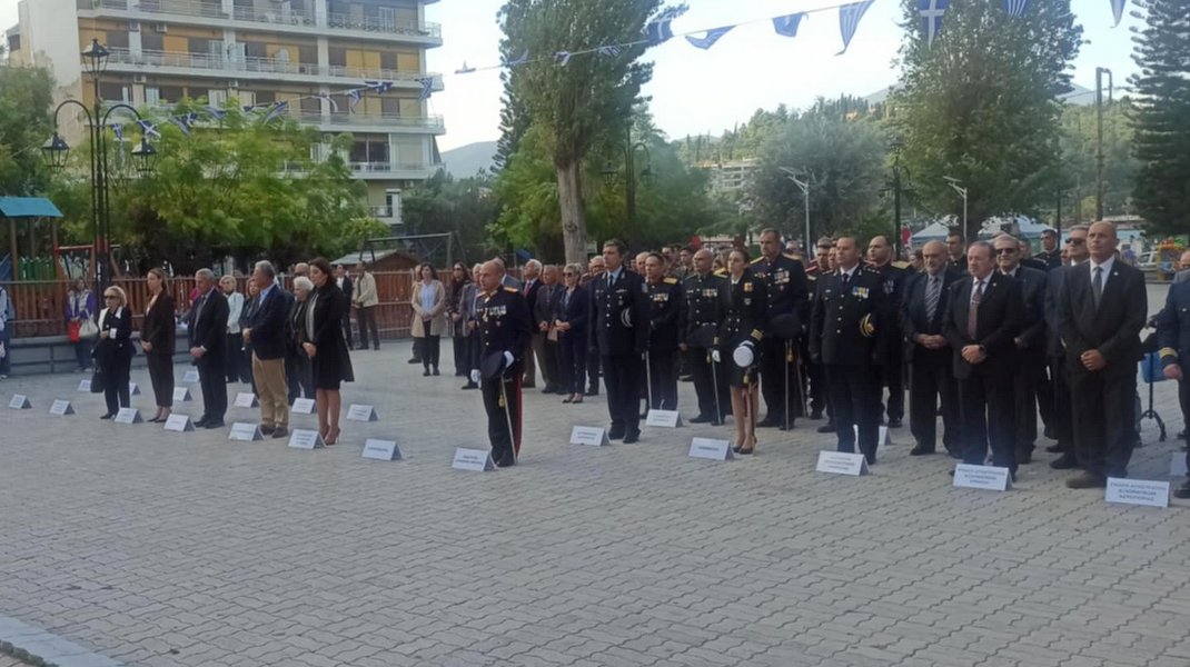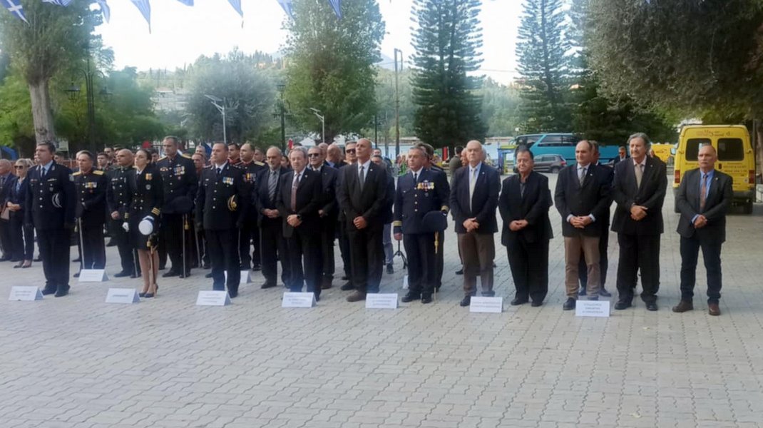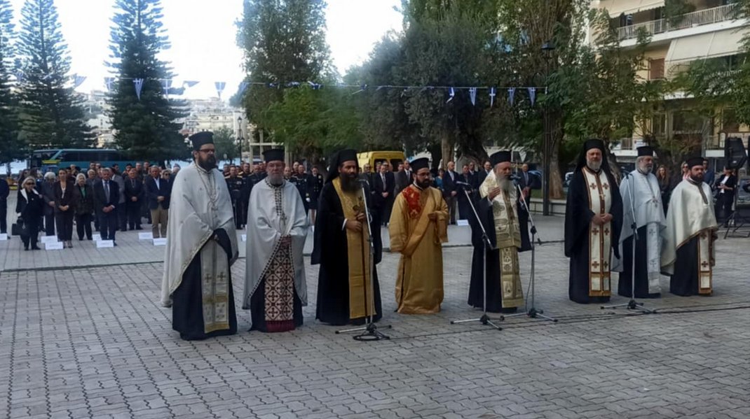 Στις 11 το πρωί τελέστηκε η επίσημη δοξολογία, χοροστατούντος του Μητροπολίτη Χαλκίδος κ. Χρυσοστόμου, με την παρουσία των βουλευτίνων Κωνσταντίνας Καραμπατσώλη και Κατερίνας Καζάνη, της πρώην πρωθυπουργού Βασιλικής Θάνου, άλλων επισήμων και εκπροσώπων των Ενόπλων Δυνάμεων και των Σωμάτων Ασφαλείας