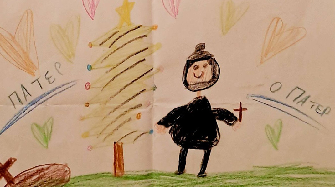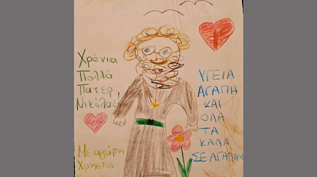 Παιδιά ...ζωγράφισαν τον Αρχιμανδρίτη Νικόλαο Πριμηκύριο για να του ευχηθούν για τη γιορτή του