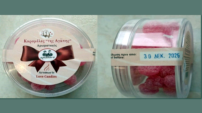 - Τις καραμέλες «της Αγάπης – Αρωματικές», με ημερομηνία ανάλωσης πριν από τις 30 Δεκεμβρίου 2026 και συσκευασία καθαρού βάρους περίπου 110 γραμμαρίων, της εταιρείας με διακριτικό τίτλο «Αρκαδιανή», που εδρεύει στο Ψάρι Αρκαδίας.