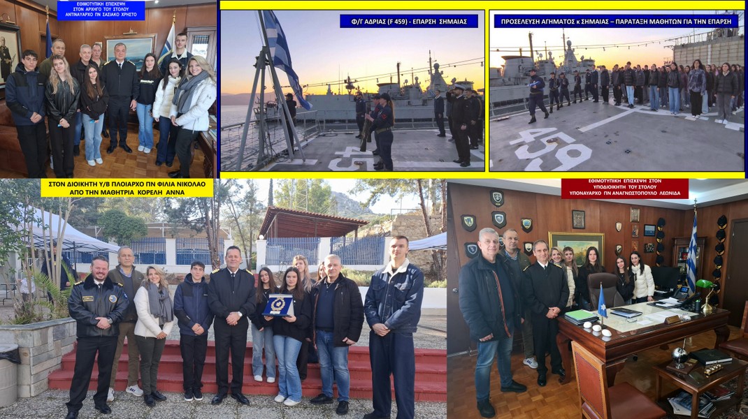 Ογδόντα έξι μαθητές της Α΄ και Β΄ Λυκείου, συνοδευόμενοι από τους εκπαιδευτικούς Πέτρο Μπακατσέλο, Ευάγγελο Καπενή, Ελένη Μαντή, Σοφία Χαντζή, Φλώρα Τσάγκα και Δημήτριο Βενιζέλο, επισκέφθηκαν τον Ναύσταθμο Σαλαμίνας και μονάδες του Πολεμικού Ναυτικού.