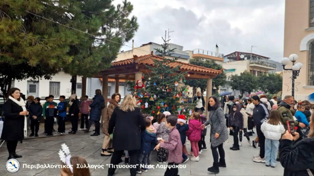 Σε μια ζεστή και συγκινητική χριστουγεννιάτικη δράση συμμετείχαν οι μαθητές του Αναξαγόρειου Γυμνασίου, του Δημοτικού Σχολείου και του 1ου Νηπιαγωγείου Νέας Λαμψάκου, γεμίζοντας με ευχές - προσευχές το ελατόδεντρο, στο προαύλιο του ιερού ναού του Αγίου Τρύφωνα.