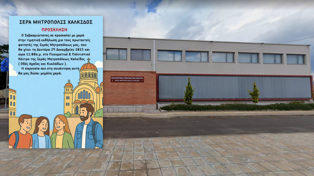Η Μητρόπολη Χαλκίδος διοργανώνει εκδήλωση, με αφορμή τις εορτές του Αγίου Δωδεκαημέρου, για να τιμήσει τους νεοεισαχθέντες επιτυχόντες φοιτητές Σχολών της Τριτοβάθμιας Εκπαίδευσης για το ακαδημαϊκό έτος 2025-2026.