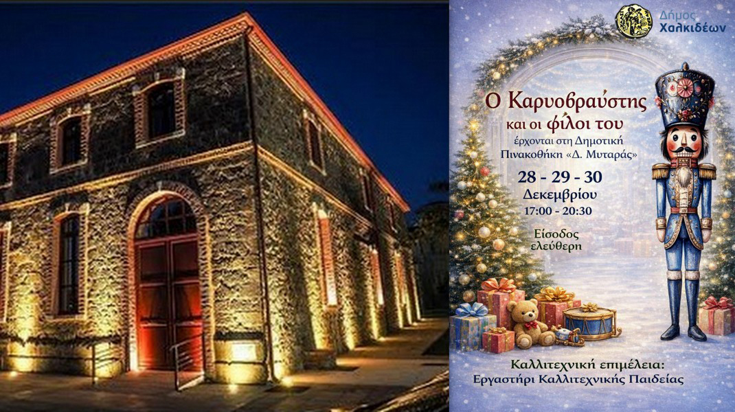 Η μαγεία των Χριστουγέννων βρίσκει καταφύγιο στη Δημοτική Πινακοθήκη «Δ. Μυταράς», στη Χαλκίδα, όπου ο Καρυοθραύστης και οι φίλοι του ετοιμάζονται να χαρίσουν στιγμές μουσικής, φαντασίας και χαμόγελων σε παιδιά και ενήλικες.