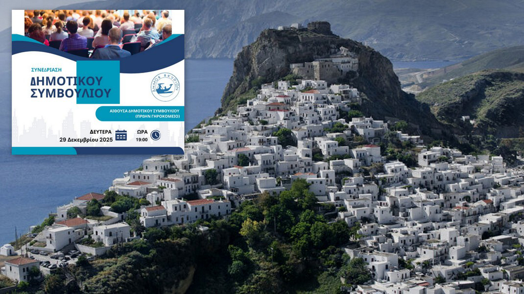 Συνεδριάζει το Δημοτικό Συμβούλιο του Δήμου Σκύρου, τη Δευτέρα 29 Δεκεμβρίου, στις 7 το απόγευμα, στην αίθουσα συνεδριάσεων του Δ.Σ. στο κτήριο του Ιδρύματος Στεφανίδη.